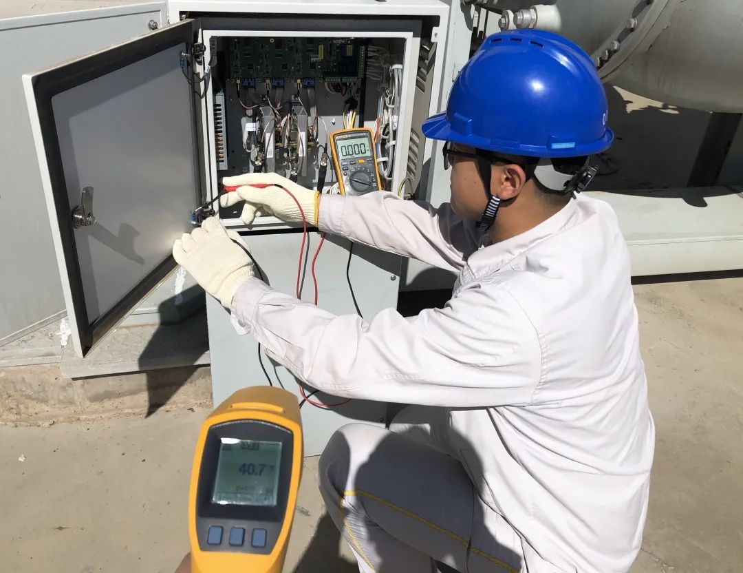 此時,測溫槍顯示升壓站的環境溫度已達40.7℃,而陜投集團趙石畔煤電設備部電氣中心的李強身穿灰色的長袖工作服,戴著厚厚防護手套,踩著厚厚的絕緣鞋在進行二次回路檢查工作,汗水在臉上流淌,這只是趙石畔煤電眾多酷暑中堅守者的一個縮影,他們用汗水彰顯責任與擔當。( 朱新甜)