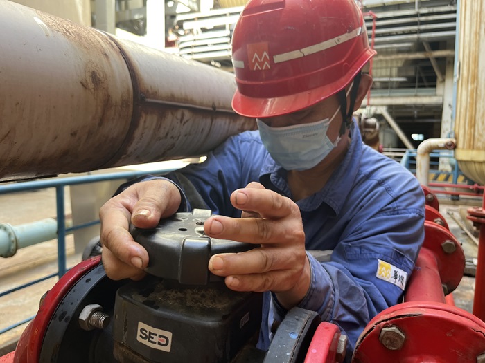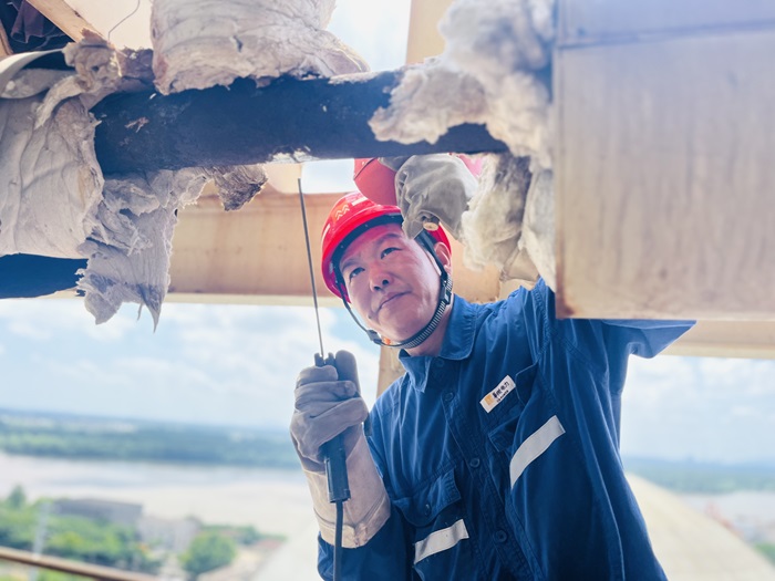 化學水處理計量泵突發損壞,汽機班組老員工周俊便帶領他的三人搶修小組第一時間趕到,他們一頭扎進工作區域,整整一天都在忙碌的搶修,一天的最低氣溫是34度,最高氣溫是43度,他們的衣服不知道被汗水浸濕了多少次。搶修時,他們為了降溫,直接用冷水澆頭。