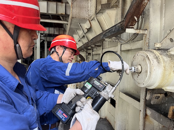 在高溫檢修現場,每天都能看到檢修員工揮汗如雨,奮力拼搏的身影,設備有缺陷,機器壞了,那是不能等的,即便再炎熱,溫度再高,也要第一時間撲上去。在水泵旁、在火嘴邊、在送風機下、在撈碴機上,檢修員工們總是一邊擦拭著汗水,一邊維修著設備,他們提出的口號是“勤消缺、精檢修、戰高溫、保供電”。