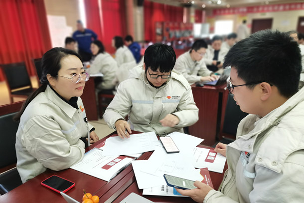 圖為青年骨干共同梳理"危廢處置成本優(yōu)化路徑"