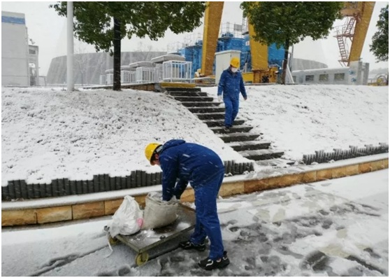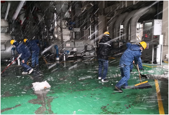 早在幾天前,一收到市氣象局發(fā)布的大雪預(yù)警信息后,楊坤就帶領(lǐng)著六值班組成員進(jìn)行相關(guān)重點(diǎn)區(qū)域的學(xué)習(xí)和操作。工作開始前,楊坤再三叮囑值內(nèi)成員要采取好防護(hù)保暖措施,預(yù)防風(fēng)寒感冒。大雪襲來(lái)后,楊坤第一時(shí)間帶領(lǐng)值內(nèi)成員在部門統(tǒng)籌安排下,前往生產(chǎn)現(xiàn)場(chǎng)清雪、撒鹽、鋪設(shè)防滑袋等相關(guān)安全保障措施。風(fēng)雪中,楊坤拿來(lái)了幾個(gè)大鐵鍬,在鍋爐12米的給煤機(jī)平臺(tái)上將凍上的冰面一片片敲裂,然后再順著雪一道鏟到通道的兩旁,最后撒上鹽,在相關(guān)區(qū)域鋪上麻袋。有人問(wèn)他怎么做得這么熟練,他笑著說(shuō)自己打小在東北的家鄉(xiāng)就干這些事。
