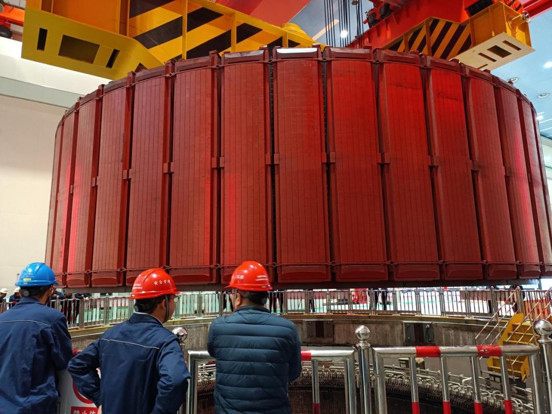 對于水輪發(fā)電機組來說,發(fā)電機轉(zhuǎn)子相當于它的心臟,是整個水輪發(fā)電機組最核心的部件。#3發(fā)電機轉(zhuǎn)子直徑約13米,高約3.8米,重達1300余噸。吊裝作業(yè)的精度要求高,難度大,需要多專業(yè)精益化的相互配合。