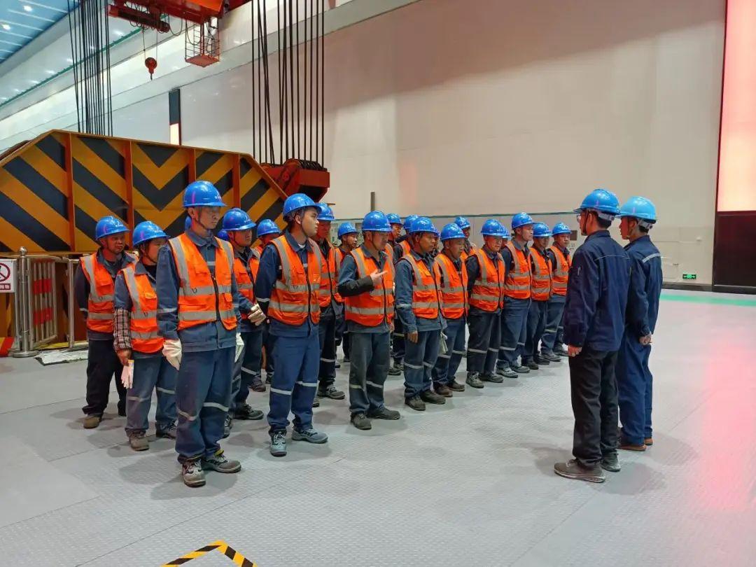 事關(guān)安全生產(chǎn),反復強調(diào)再多次都不為過!當天上午08:55,當參與吊出作業(yè)的人員陸續(xù)到齊后,總指揮陳宇現(xiàn)場主持召開了起吊啟動會,再次明確各單位職責分工,并組織參吊人員認真進行安全技術(shù)交底,希望全體人員凝心聚力、振奮精神,確保本次轉(zhuǎn)子吊出工作安全有序完成。