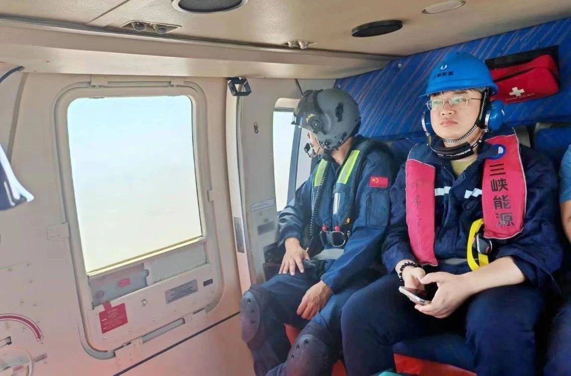 運(yùn)維檢修人員乘坐直升機(jī)前往海上風(fēng)電場(chǎng)搶修設(shè)備