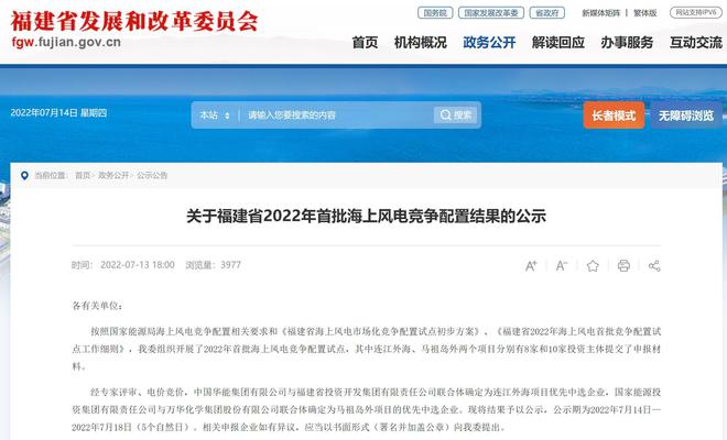 昨日(7月13日),福建省發改委發布《關于福建省2022年首批海上風電競爭配置結果的公示》,有消息稱此次福建省海上風電項目中標的上網電價低至0.2元/度左右。