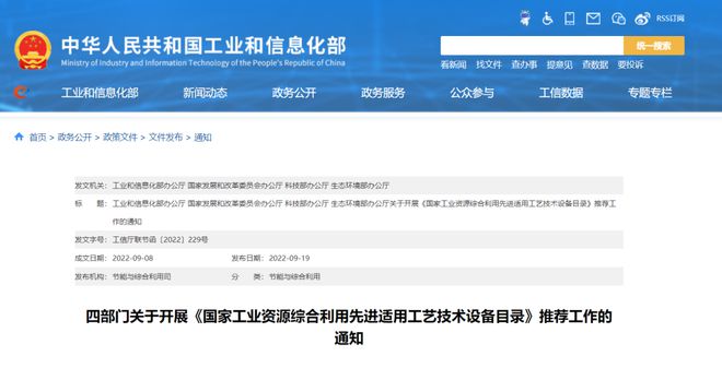 (二)請各省級工業和信息化、發展改革、科技、生態環境主管部門,有關全國性行業協會、學會于2022年11月30日前,將推薦文件、工藝技術設備推薦匯總表(附件1)及各單位工藝技術設備申報書(附件2)、應用實例表(附件3)等電子版材料通過工業節能與綠色發展管理平臺報送至工業和信息化部(節能與綜合利用司)。