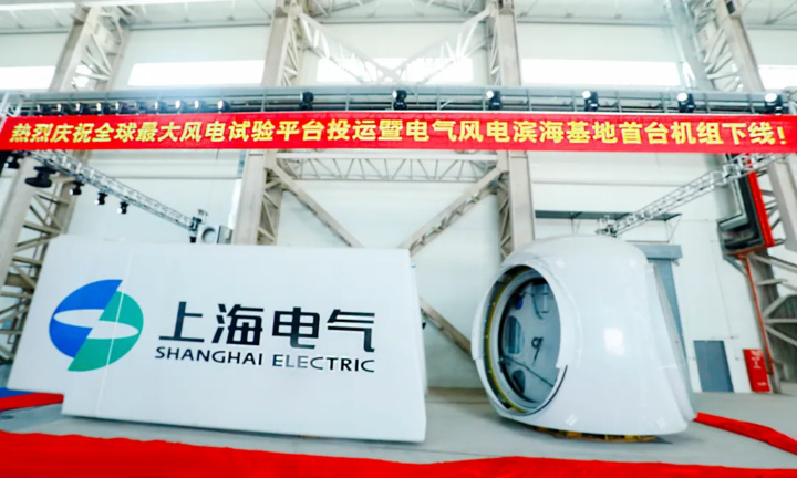 日前,全球最大風(fēng)電試驗(yàn)平臺(tái)——上海電氣風(fēng)電全功率平臺(tái)在上海電氣風(fēng)電濱海基地投運(yùn)。當(dāng)天,上海電氣風(fēng)電濱海基地首臺(tái)機(jī)組同時(shí)下線。