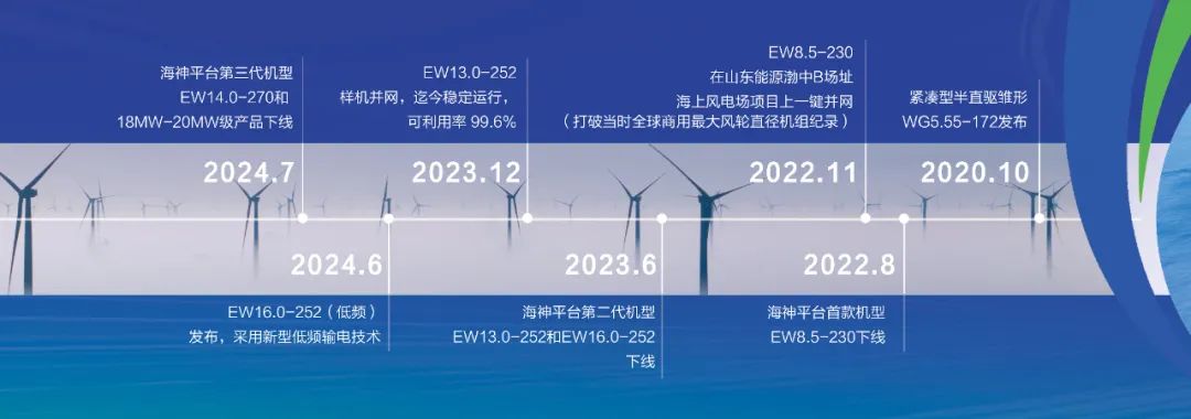 本次下線海神平臺第三代機組,可實現“一機一儲”的分散式儲能配置,實現電網調峰能力;并且同時搭載電氣風電最新研發的構網型風機技術,可實現局部弱電網下的風電場開發,具有更友好的電網適應性,為將來遠海孤島弱電網供電、分散式海風制氫、柔直輸電、低頻輸電、漂浮式風機等多場景的海上風電利用提供有力支撐。
