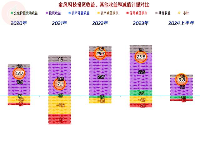 在其他收益方面有很大的影響,因為金風科技這方面的金額相當大,特別是2022年和2023年成為其盈利的主要構成部分。雖然政府補助的金額并不低,但主要的收益項目還是“投資收益”,除了“權益法核算的長期股權投資收益”之外,還有金額也很大的“處置子公司產生的投資收益”和“因喪失重大影響或處置聯合營公司取得的投資收益”。