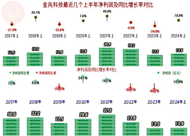 凈利潤的波動就更大一些了,但年度和半年度的峰值都是2021年創下的,這比營收峰值晚了一年。2024年雖然有同比10.8%的增長,但這是在連續兩年下跌基礎上的反彈,離峰值年份還有較大的距離。
