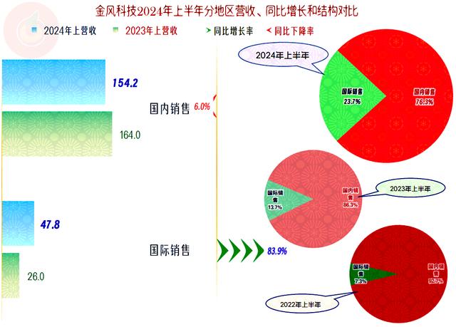 國際市場大幅增長了八成多,占比已經達到了23.7%。要知道,在2022年上半年,國際市場的占比才7.3%;短短兩年時間,就從2022年上半年12.2億元的規模,大幅增長至47.8億元,累計增長了近3倍。