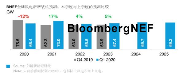 12%-疫情沖擊風電行業后,BNEF風電新增吊裝容量預測較上一季度的下調幅度