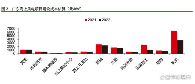 海風建設成本下降超 30%,經濟性顯著提高。隨著海風搶裝潮退去,在海風建設及配套設備產業鏈大型化加速以及競爭趨于激烈的影響下,海風項目建設成本迎來大幅下降, 我們測算 2022 年國內海風項目單位造價降幅普遍達 25%以上,預計 2023 年仍有望實現 15%左右降幅,驅動海風加速推廣平價上網。