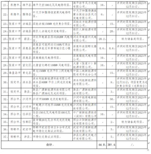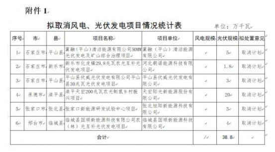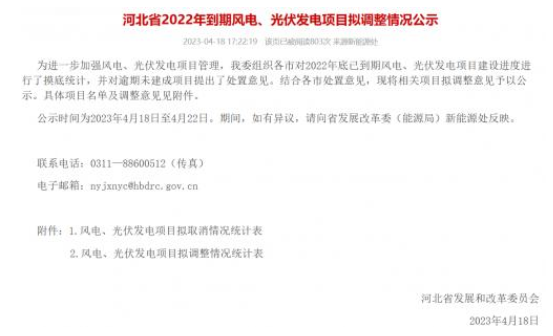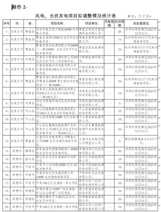河北擬調(diào)整2022年到期風(fēng)光項目公示 : 取消388MW、調(diào)整4.484GW!