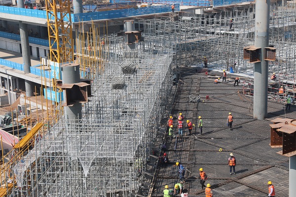 據了解,該項目混凝土主體結構已全面封頂,鋼結構屋蓋成功合攏,正在進行金屬屋面、玻璃幕墻施工。同時,二次結構及粗裝修已進入收尾階段,機電安裝,行李系統鋼平臺等專業正在全面穿插施工,項目正向著金屬屋面、玻璃幕墻施工節點目標進行沖刺。春節期間,整個項目機器不停,工人不停,進度不減,為年后精裝修施工提供了有力保障。