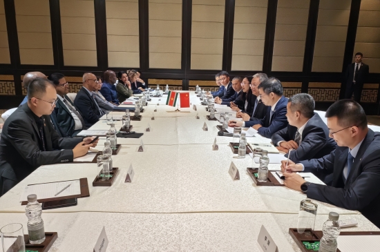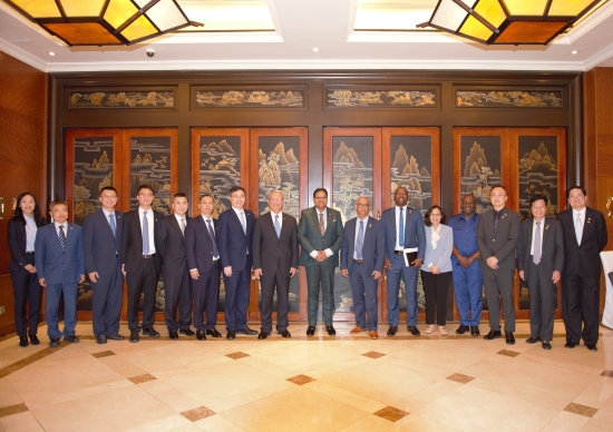 蘇里南共和國外交部長拉姆丁、自然資源部長阿比亞莫福、駐華大使張碧芬,公司有關部門、子企業負責人參加座談。(鐘洪明 盧華興)