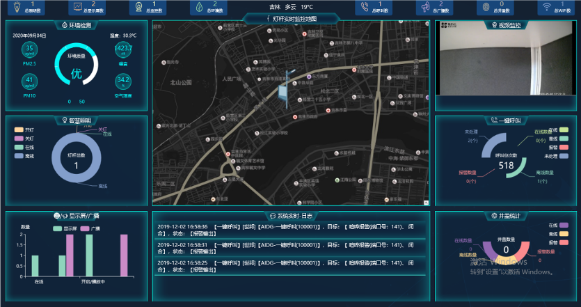 平臺根據不同智能設備的業務屬性,采用模塊化、自定義的形式將其進行業務數據可視化處理。所有可視化數據均為前端采集數據的實時更新,既可根據運營方的業務需求定制集成界面展示內容,也可支持擴展更多的業務模塊。