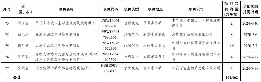 關(guān)于公布2020年生物質(zhì)發(fā)電中央補貼項目申報結(jié)果的通知