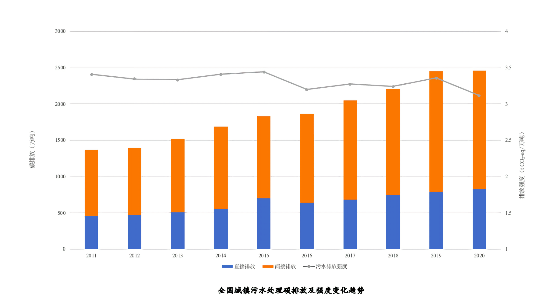 報告披露,全國城鎮污水直接碳排放和間接碳排放總體均呈現增長趨勢,2011-2020年均增速6.69%。圖/受訪者供圖