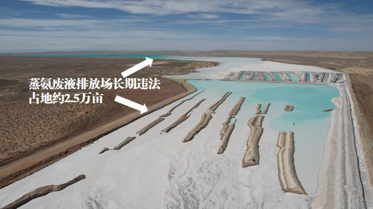 ▲圖3 2023年9月,督察組暗查發現,青海發投堿業公司、中鹽青海昆侖堿業公司蒸氨廢液排放場長期違法占地約2.5萬畝