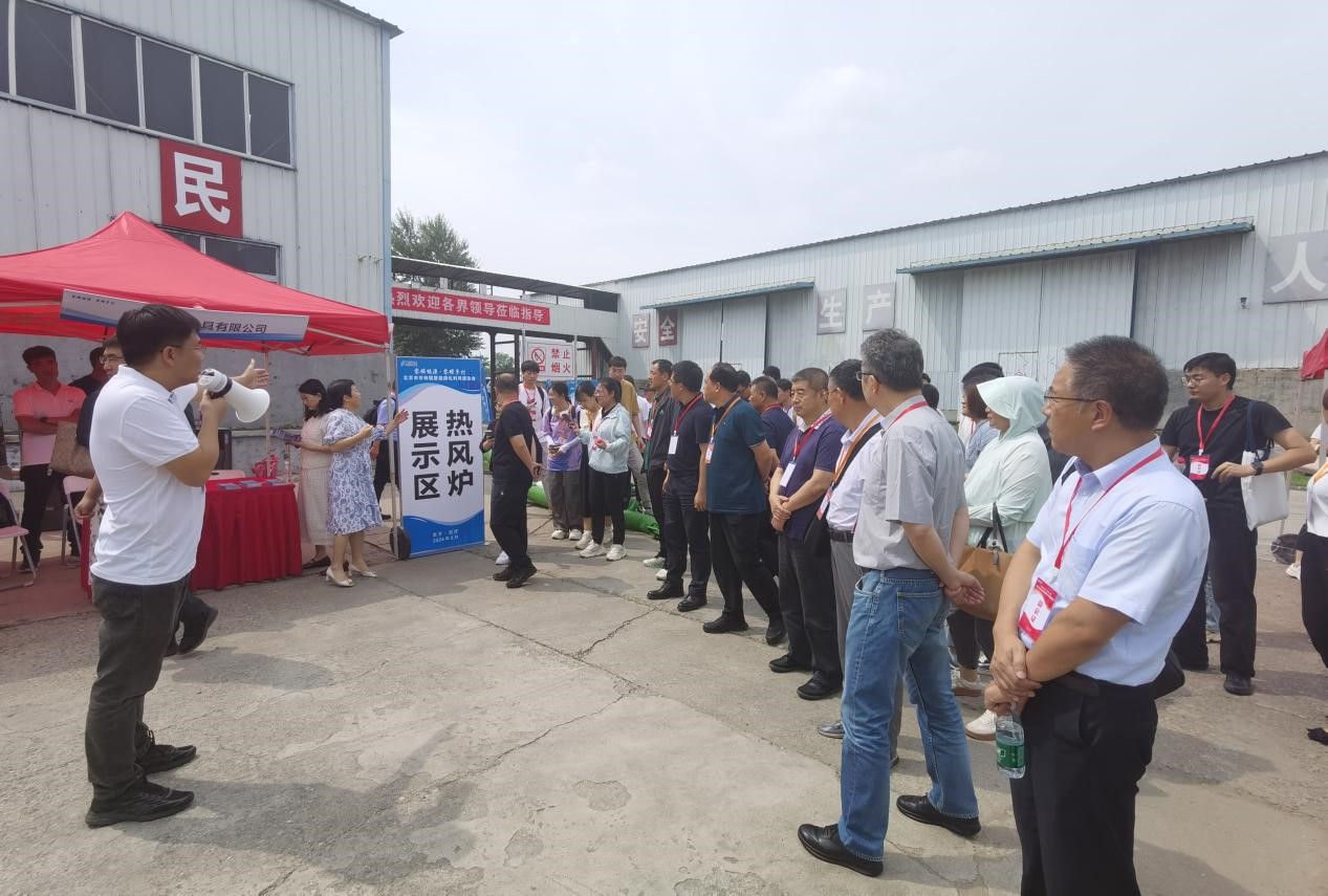 座談會同期召開了生物質爐具演示觀摩會,來自國內8家企業的生物質炊事水暖爐、生物質暖風壁爐、熱風爐等18臺創新技術產品,以及配套生物質顆粒燃料在延慶北京盛昌益態新能源科技有限公司廠區進行了現場演示。參會人員及來自北京市延慶、房山等區的部分鄉鎮村民代表、設施農業企業代表現場觀摩了產品演示。
