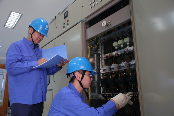 中國電力網訊 8月20日,國網寧海縣供電公司綜合能源事業部工作人員在寧海順益塑料制品有限公司,為試運行“滿月”的智能配電柜開展“體檢”,通過調試檢測,查看相關數據并進行采集分析。