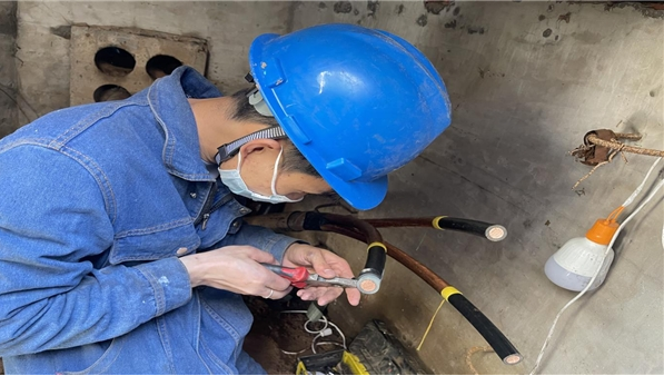 “電小二帶好,電纜穿刺儀備好電池,進入電纜井內一定要注意安全,時間一定是考慮夠的,不要心急!”配電檢修試驗班班長武志祥千叮嚀萬囑咐。負責進行熔接接頭的是具有多次工作經驗的小劉,“上次寨916線的電纜頭就是我做的,這次都有經驗了,我會很注意的。”電纜溝內濕氣顯得與春天格格不入,“收緊”了所有現場檢修人員的后頸,濕冷的潮氣使他們寒顫不斷,可手里的工作卻沒有因此而遲緩,大家相互提醒,默契配合施工,一刻不停歇。熟練的一層層剝開外護層、導電層、絕緣層......拆除、更換、接入,不疏忽任何一個細節,他們分工明確,密切協調,試驗設備、記錄數據、核對相序,有條不紊。經過近9個小時的連續奮戰,電纜熔接接頭全部按照工藝完成更換工作。