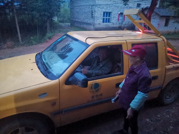 “太好了,你們來了,這下晚上可以不用摸黑了……”18時55分,經過25分鐘的車程,陳文清班長和班員到達陳家蕪頭村,陳德文和老伴正打 著手電筒,看到供電搶修車的到來,很是激動。