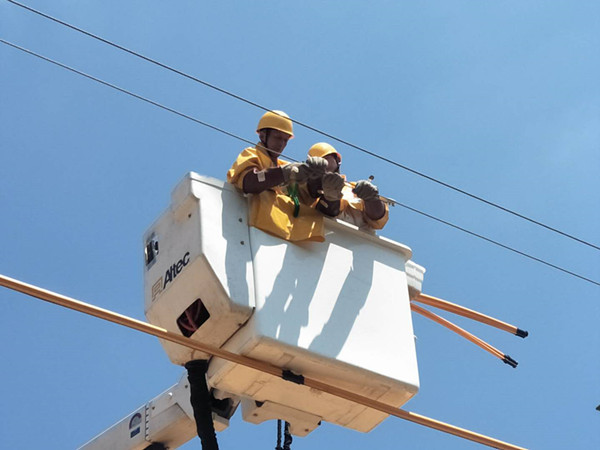 在排查好停電事故原因后,現(xiàn)場(chǎng)搶修人員開(kāi)始積極的搶修線路工作,在搶修車(chē)輛到達(dá)現(xiàn)場(chǎng),搶修人員安全措施執(zhí)行到位后,搶修人員帶電作業(yè)修復(fù)導(dǎo)線。雖然才上午11時(shí)許,但室外的溫度就已經(jīng)達(dá)到37攝氏,搶修人員登上升降車(chē),在保證安全,規(guī)范操作的情況下,開(kāi)始了導(dǎo)線的修復(fù)工作,搶修現(xiàn)場(chǎng)有序進(jìn)行,在高溫酷暑的烈日下,經(jīng)過(guò)了45分鐘的揮汗如雨緊急搶修,終于恢復(fù)了10KV市山官樁支線的正常運(yùn)行。搶修人員在完成工作后,脫去了厚重的安全工作服,自己的衣服已經(jīng)早已被汗水浸濕,望著他們身影,感嘆工作在一線搶修的師傅們真不容易,心中由衷的敬佩他們。(萬(wàn)婉/文)(胡志強(qiáng)/圖)