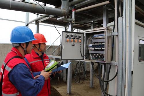 國網蠡縣供電公司工作人員對養殖場內糞污無害化處理設備進行測溫檢查 龐亞杰 攝