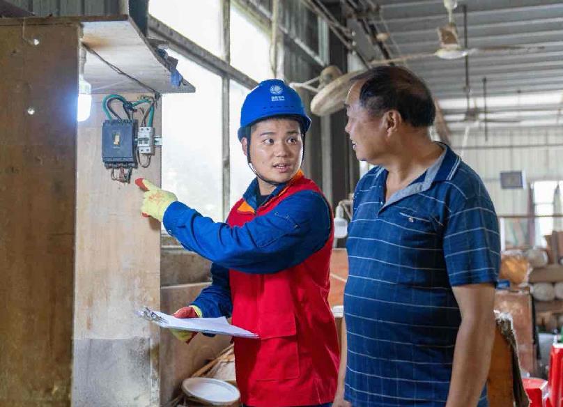 在竹香彌漫的生產工作間,三三兩兩的老手工藝人圍坐操作臺,他們帶著眼鏡巧妙施展“技藝”。現場各式各樣的竹工藝品制作精良,古色古香中透露出新時代的生活情調,讓人愛不釋手。皖美共產黨員服務隊員陳劍洋和唐楊義對現場的電力線路、配電設施等進行了細致的排查。發現部分線路存在裸露、接頭松動等安全隱患,隨即向廠方提出具體的整改建議,并指導其進行現場整改。針對竹制品易燃的特點,唐楊義還重點檢查廠房內電氣線路的敷設是否符合規范、電氣設備是否存在老化問題、以及消防器材是否配備充足,并叮囑現場工作人員注意安全用電,切勿私拉亂接,人離開即斷電,有效防范電氣事故的發生。