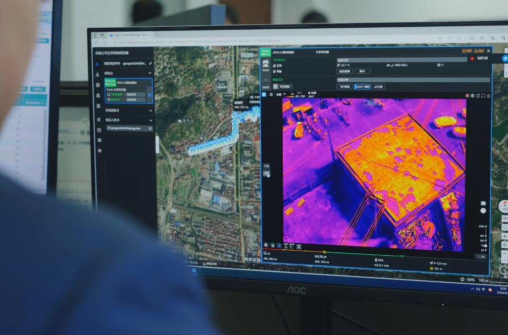 當天,安裝在110千伏丈亭變門前的無人機巢緩緩打開,一架無人機自動升空,沿著設定好的路線徑直飛去。同時,無人機拍攝的畫面成功回傳到公司運檢部電腦平臺,通過“實景”和“紅外”功能切換,可以直接監測到是否有起火點,以“機器代人”極大提高了火災隱患的排查效率。