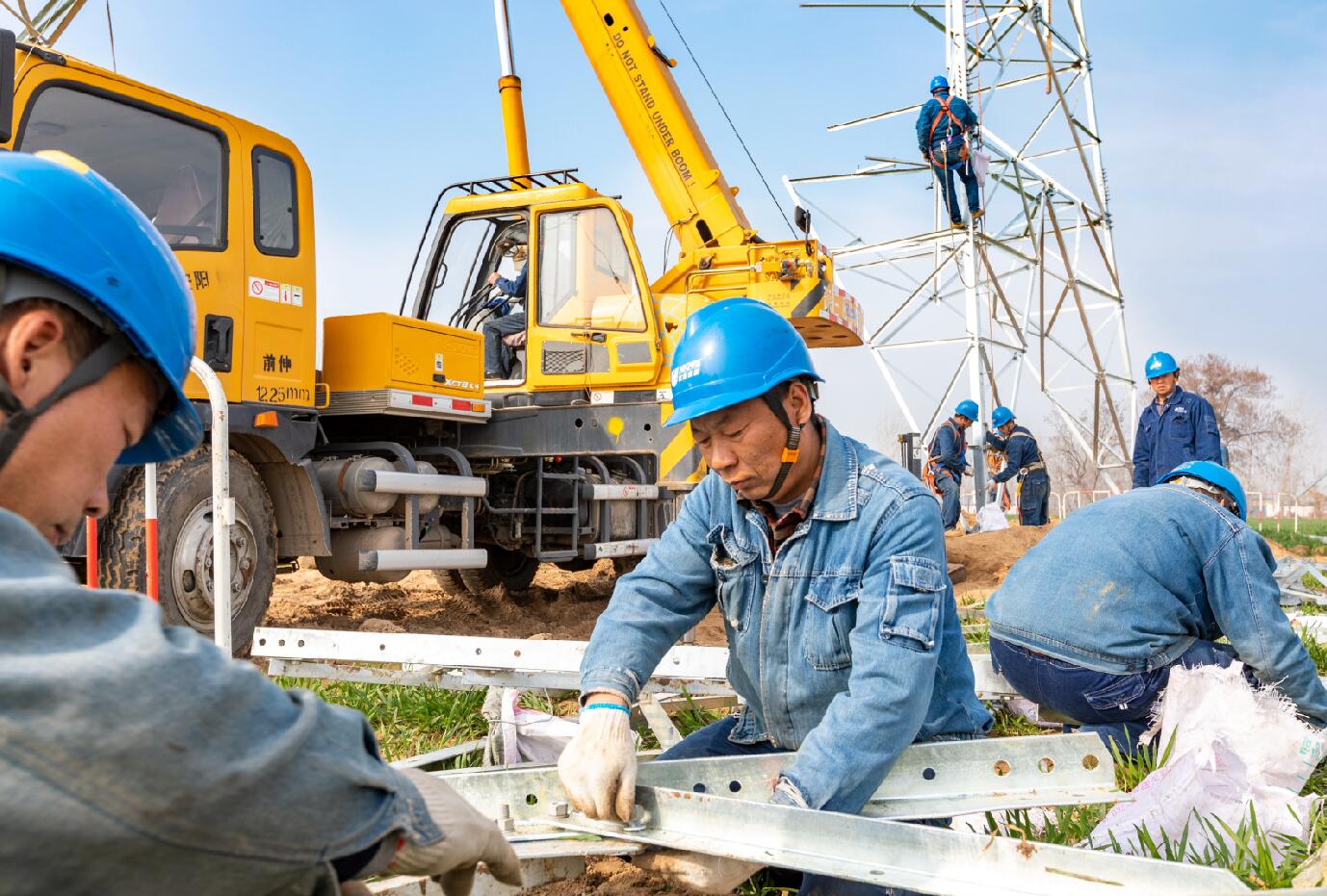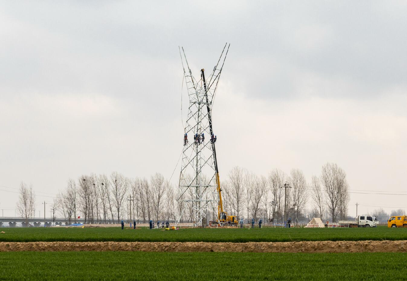 3月12日,在河南滑縣白道口鎮后吾旺村,太陽剛出來,麥苗上還掛著晶瑩的露珠。走在麥隴間有種踏春的喜悅,露珠也瞬間浸透了腳上的鞋。看向那邊卻是另一番景象,新建220千伏電力線路跨越高鐵工程正在緊張實施中。現場國網滑縣供電公司的施工人員,早已開始了組立鄭濟鐵路(滑縣段)第75號鐵塔,等76號鐵塔也組裝完后,73號鐵塔與76號鐵塔導線放通,鄭濟鐵路(滑縣段)全線路貫通。為下一步鄭濟高鐵聯調聯試、試車及最后投入運營提供可靠電力支撐。