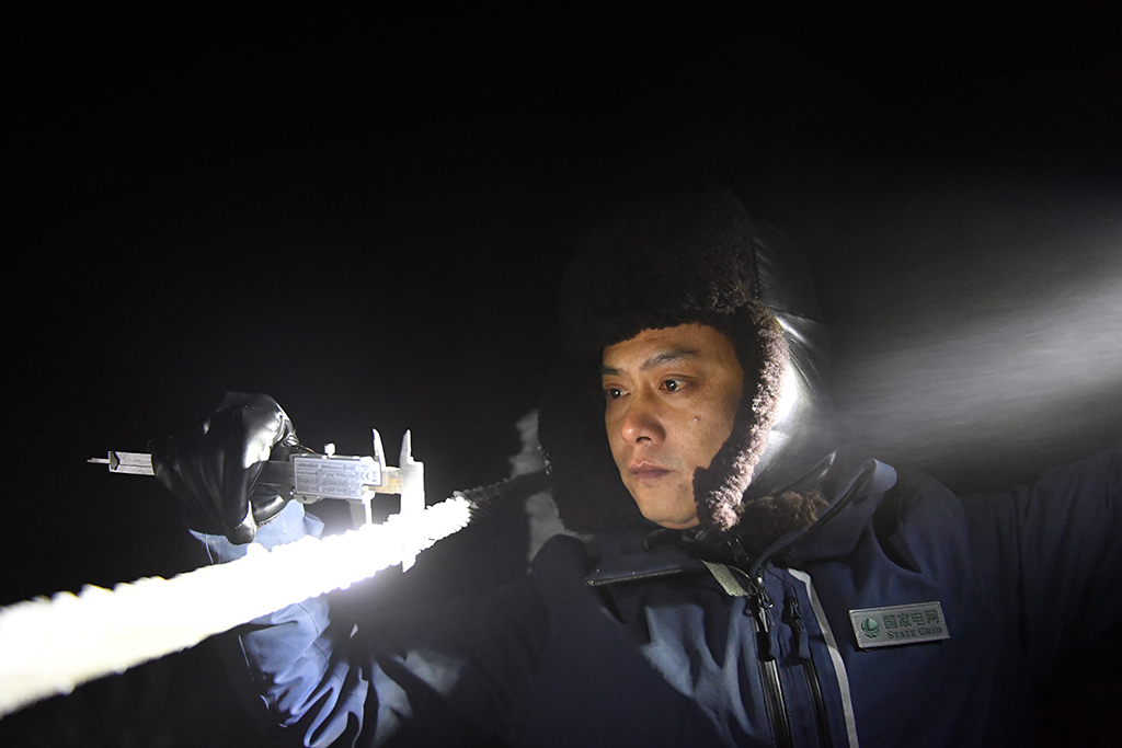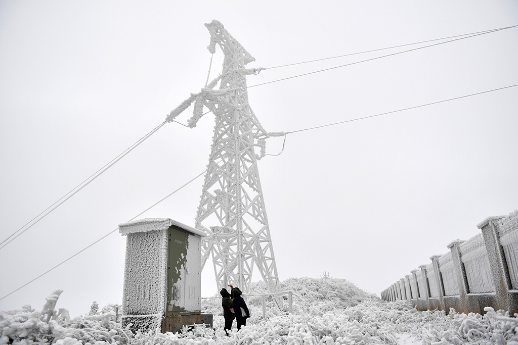 本輪寒潮期間,湖南省提前布置51套主網、142套配網融冰裝置,8300多名電力工人隨時待命,做好雨雪、冰凍、強風等異常天氣下的設備特巡和特護,守護電網安全,守護萬家燈火。(新華社記者 陳振海 攝)