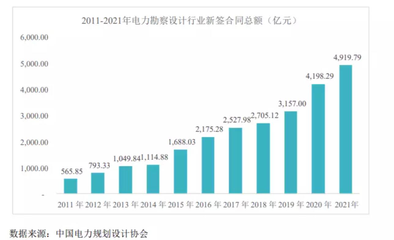 招股書顯示,根據中國電力規劃設計協會發布的電力勘察設計行業各年度統計數據顯示,2021年,電力勘察設計行業實現營業收入2,684.21億元,同比增長26.82%。