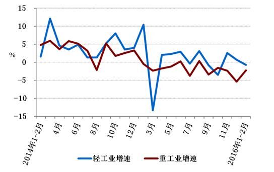 圖2: 2014年以來分月輕、重工業用電量增速情況