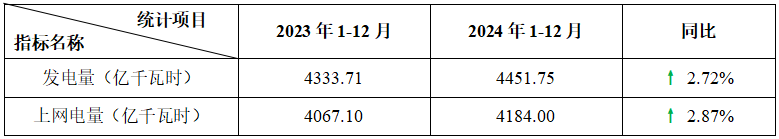 表3:2024年1-12月運(yùn)行核電機(jī)組電力生產(chǎn)情況統(tǒng)計(jì)表