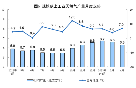 4月份,規模以上工業主要能源產品生產均保持同比增長。與3月份比,原煤、天然氣、電力生產加快,原油生產有所放緩。
