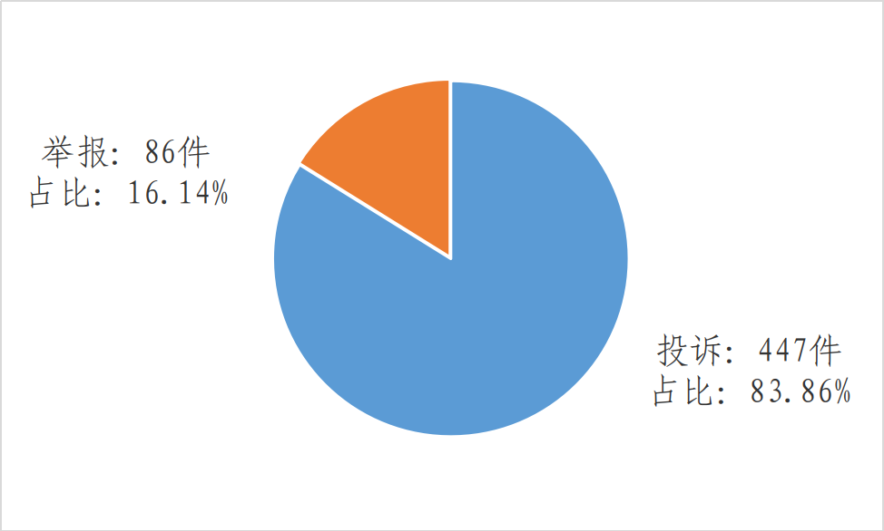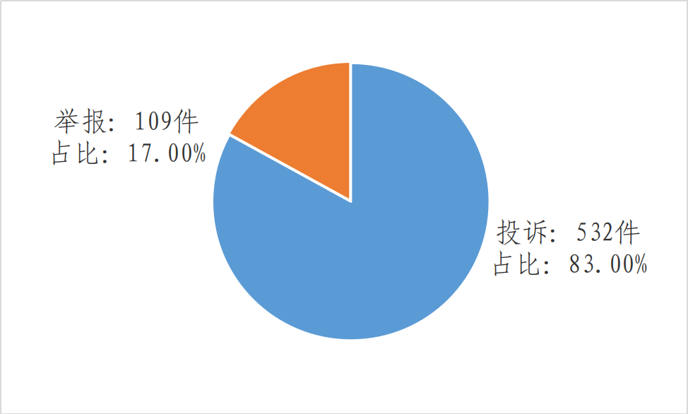2023年4月,12398熱線共接收投訴舉報641件,環比增長1.26%、同比下降13.14%。其中:投訴532件,環比下降0.75%、同比下降27.12%;舉報109件,環比增長12.37%、同比增長105.66%。