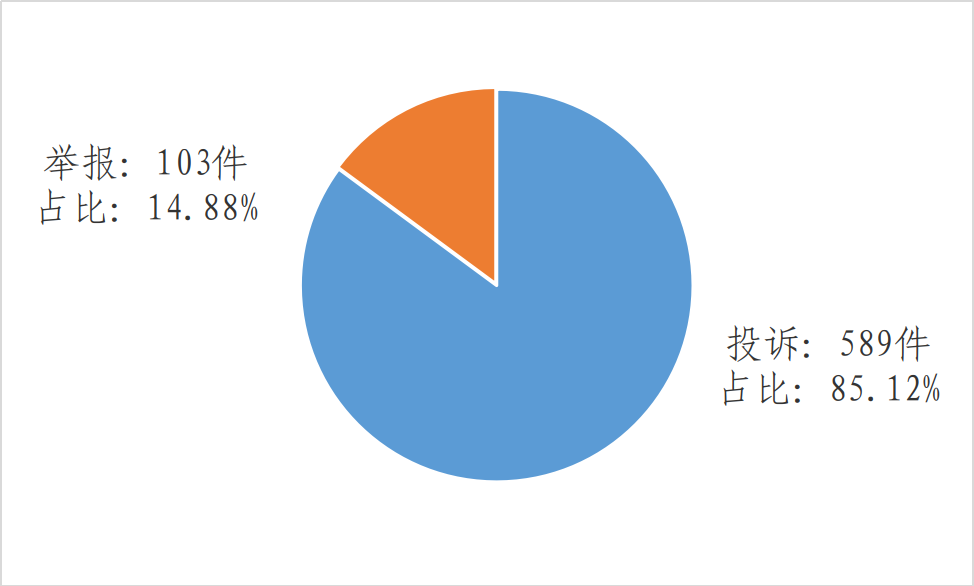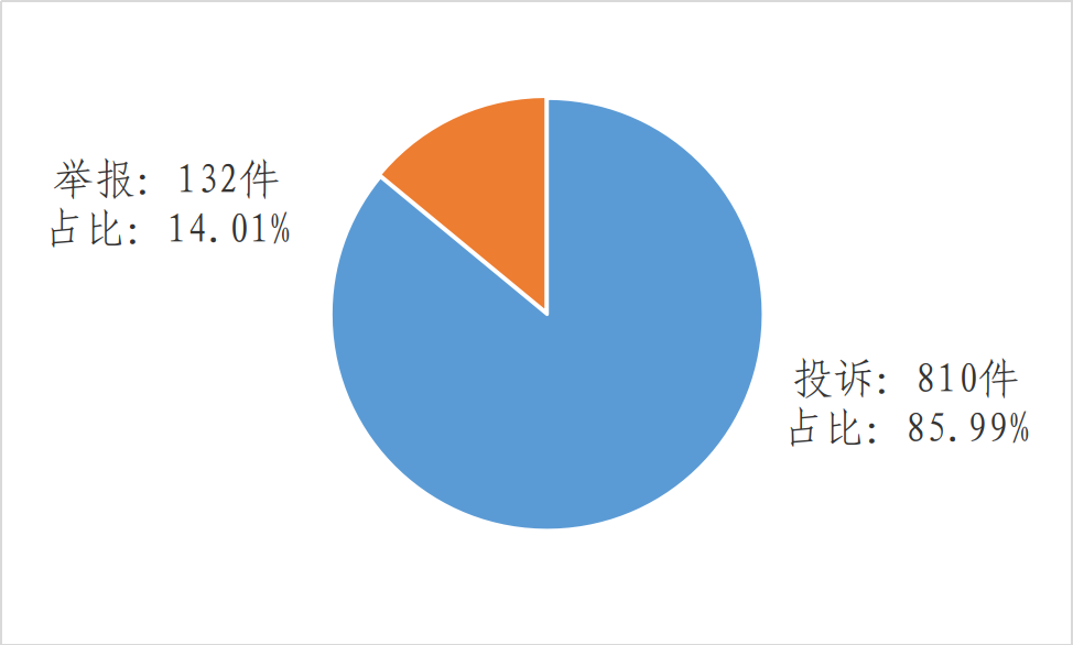 2023年6月,12398熱線共接收投訴舉報942件,環比增長19.85%、同比下降34.76%。其中:投訴810件,環比增長17.39%、同比下降41.39%;舉報132件,環比增長37.50%、同比增長112.90%。