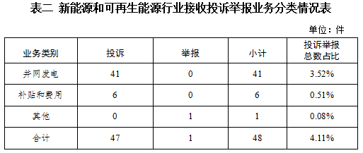 新能源和可再生能源行業排在第二位,數量為48件、占投訴舉報總數的4.11%,主要集中在并網發電、補貼和費用等方面。