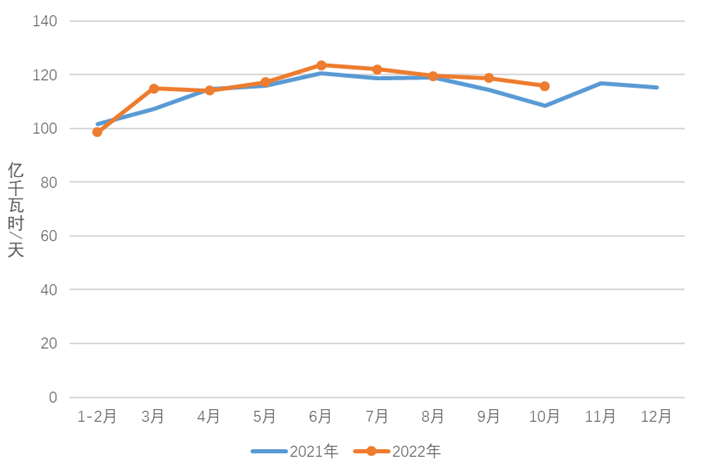 圖3 2021、2022年分月制造業日均用電量