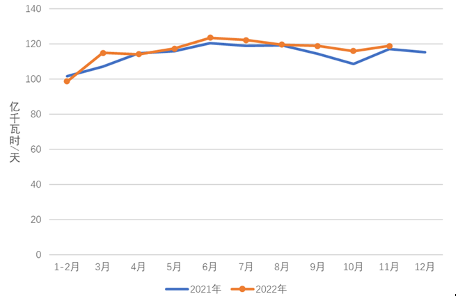 圖3 2021、2022年分月制造業日均用電量