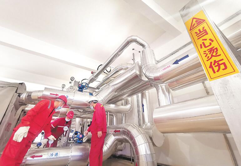 中國(guó)石油華北油田雄安分公司工作人員檢查0701地?zé)犴?xiàng)目設(shè)備運(yùn)行狀況。楊凱 攝