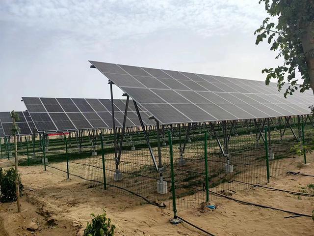 該項目在引用已經示范驗收的沙漠土壤化改造、旱生作物種植及改良、高效節水等現代農業技術的基礎上,首次嘗試農光互補的模式。