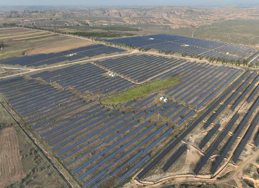走進清水河光伏項目現場,整齊遼闊的太陽能光伏板像“藍色海洋”,在發出綠色電能的同時,還有效遮擋了暴曬的陽光,守護板下植被。該項目在高茂泉窯村配套投資建設了清水河光伏公園及清水河沿黃河高質量發展展覽館、村口樓牌、形象雕塑等硬件設施,將高茂泉窯村打造成為清水河縣新農村旅游打卡地。該項目通過光伏發電與水土保持、農牧業和旅游業相結合的“光伏+環境綜合治理”生態修復模式,實現了清潔能源和土地資源的高效利用,有效推動了當地旅游業的蓬勃發展,積極改善當地生態環境。