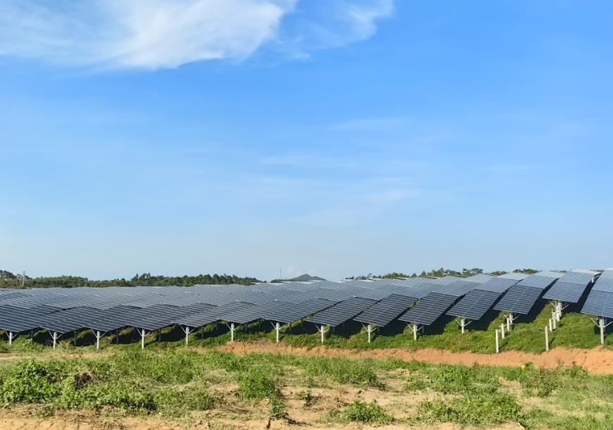 東升光伏電站位于湛江市石嶺鎮東升農場,總裝機容量50兆瓦。光伏陣列區土地復合利用面積合計1023畝,可種植五指毛桃等草藥。該項目通過配套建設五指毛桃種植園區,打造“光伏+中藥種植”產業鏈,推動當地形成新的支柱產業循環,幫助農民創收增收。