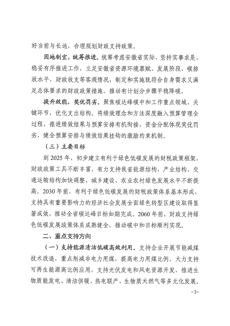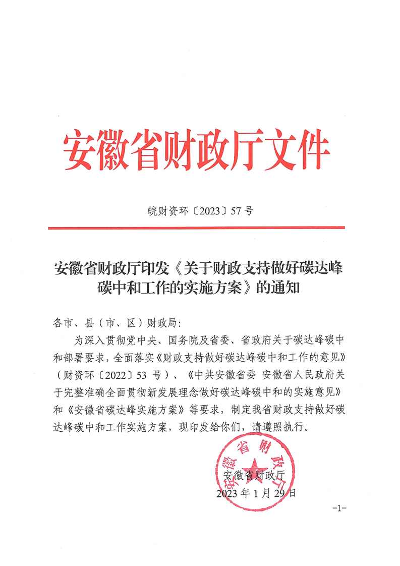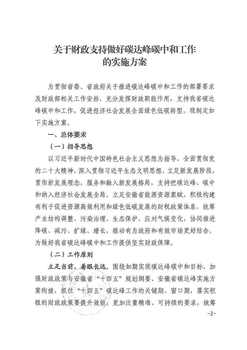 近日,安徽省財政廳印發(fā)《關(guān)于財政支持做好碳達(dá)峰碳中和工作的實施方案》的通知。