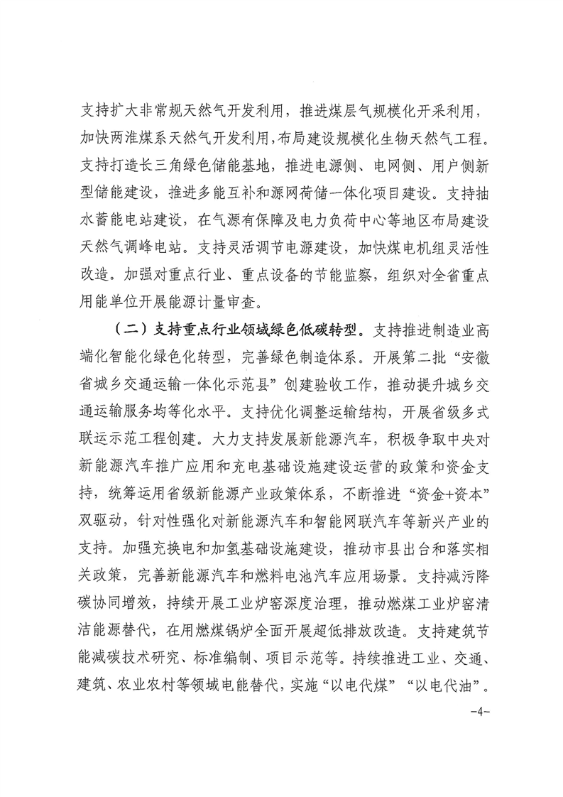 通知指出,支持企業(yè)開展節(jié)能減煤技術(shù)改造,重點削減非電力用煤,提高電力用煤比例。大力支持可再生能源高比例應(yīng)用,支持光伏發(fā)電和風(fēng)電資源開發(fā),推進(jìn)生物質(zhì)能發(fā)電、清潔供暖、熱電聯(lián)產(chǎn)、生物質(zhì)天然氣等多元化發(fā)展。支持?jǐn)U大非常規(guī)天然氣開發(fā)利用,推進(jìn)煤層氣規(guī)模化開采利用,加快兩淮煤系天然氣開發(fā)利用,布局建設(shè)規(guī)模化生物天然氣工程。支持打造長三角綠色儲能基地,推進(jìn)電源側(cè)、電網(wǎng)側(cè)、用戶側(cè)新型儲能建設(shè),推進(jìn)多能互補(bǔ)和源網(wǎng)荷儲一體化項目建設(shè)。支持抽水蓄能電站建設(shè),在氣源有保障及電力負(fù)荷中心等地區(qū)布局建設(shè)天然氣調(diào)峰電站。支持靈活調(diào)節(jié)電源建設(shè),加快煤電機(jī)組靈活性改造。加強(qiáng)對重點行業(yè)、重點設(shè)備的節(jié)能監(jiān)察,組織對全省重點用能單位開展能源計量審查。