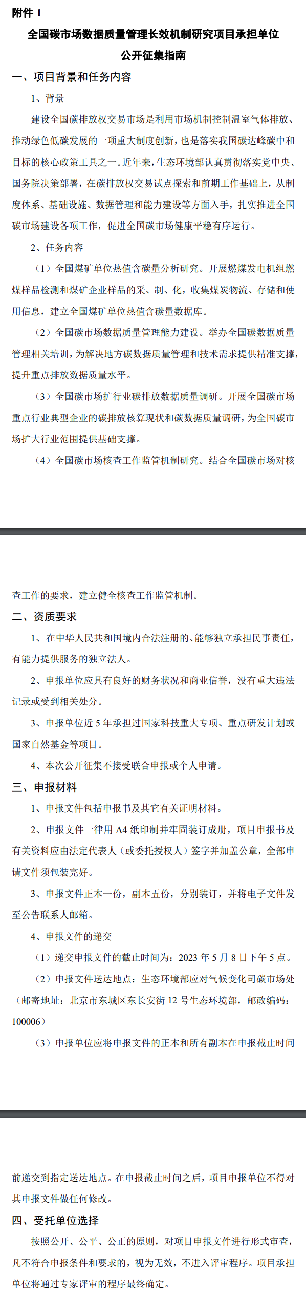 附 件:1.全國(guó)碳市場(chǎng)數(shù)據(jù)質(zhì)量管理長(zhǎng)效機(jī)制研究項(xiàng)目承擔(dān)單位公開征集指南
